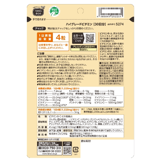 HOME 食品/菓子 サプリメント ハイグレードビタミン 徳用 NEW おすすめ FANCL ハイグレードビタミン 徳用 約90日分(徳用3袋セット)1袋(120粒) × 3 免税価格¥6,780 6314100125 / 4908049262211 免税価格 ¥6,780 6314100125 / 4908049262211 数量 1 2 3 4 5 6 7 8 カートにいれる お気に入りに追加 ご注文可能店舗 第3ターミナル 出発 TIAT DUTY FREE CENTRAL 第3ターミナル 到着 到着 第2ターミナル 出発 予約品引渡しカウンター 第2ターミナル 到着 到着 第3ターミナル 出発 WACOAL ビジネスジェット 体の変化に負けない、選び抜かれたビタミン。ファンケルの「ハイグレードビタミン」は、吸収性・持続性に優れ、効率良く働くビタミンを複合配合。年齢とともに体の変化を感じる方や、これまでのビタミンで実感が得られなくなった方におすすめです。※妊娠・授乳中の方、お子様はお召し上がりにならないでください。※本品は、多量摂取により疾病が治癒したり、より健康が増進するものではありません。1日の摂取目安量を守ってください。※本品は、特定保健用食品と異なり、消費者庁長官による個別審査を受けたものではありません。※本品により尿が黄色くなることがありますが、これはビタミンB2による一時的なものですので心配はありません。※限定パッケージは限定数に達し次第、終了とさせていただきます。 ご注文可能店舗 第3ターミナル 出発 TIAT DUTY FREE CENTRAL 第3ターミナル 到着 到着 第2ターミナル 出発 予約品引渡しカウンター 第2ターミナル 到着 到着 第3ターミナル 出発 WACOAL ビジネスジェット 一覧に戻る FANCLの商品をもっと見る ※実際の商品の色と異なる場合がありますのでご了承ください。 ※免税価格および取扱い商品は、都合により変更させていただく場合がございます。 ※サイト上に掲載している商品でもお品切れ・完売となっている場合がございますのでご了承ください。未成年者へのお酒・たばこ類の販売はいたしておりません。 関連商品から探す T2T3BJ FANCL 徳用30代からのサプリメント女性 ¥6,920 6314100101 T2T3BJ FANCL 徳用40代からのサプリメント女性 ¥11,090 6314100103 T2T3BJ FANCL 大人のカロリミット徳用 ¥7,390 6314100088 T2T3BJ FANCL 尿酸サポート 30日分 約30日分 120粒 ¥3,600 6314100028 T2T3BJ FANCL 徳用50代からのサプリメント女性 30〜90日分30袋(1袋中7粒)×3 ¥12,350 6314100105 このページは20歳以上の方を対象にしています。 生年月日を入力してください 西暦 2025 2024 2023 2022 2021 2020 2019 2018 2017 2016 2015 2014 2013 2012 2011 2010 2009 2008 2007 2006 2005 2004 2003 2002 2001 2000 1999 1998 1997 1996 1995 1994 1993 1992 1991 1990 1989 1988 1987 1986 1985 1984 1983 1982 1981 1980 1979 1978 1977 1976 1975 1974 1973 1972 1971 1970 1969 1968 1967 1966 1965 1964 1963 1962 1961 1960 1959 1958 1957 1956 1955 1954 1953 1952 1951 1950 1949 1948 1947 1946 1945 1944 1943 1942 1941 1940 1939 1938 1937 1936 1935 1934 1933 1932 1931 1930 1929 1928 1927 1926 1925 1924 1923 1922 1921 1920 1919 1918 1917 1916 1915 1914 1913 1912 1911 1910 1909 1908 1907 1906 1905 月 1 2 3 4 5 6 7 8 9 10 11 12 日 1 2 3 4 5 6 7 8 9 10 11 12 13 14 15 16 17 18 19 20 21 22 23 24 25 26 27 28 29 30 31 次回から入力を省略 はいいいえ ※共有パソコンをご利用の場合は「いいえ」を選んでください。 ※20歳未満の方は酒類、たばこの商品を閲覧する事が出来ません。 閲覧する トップページへ 当店では、未成年者に対しては酒類、たばこの販売をいたしません。 商品をカートに追加しました お買い物を続ける カートから注文へ進む 予約手続きにお進みいただくために 同一店舗でお受け取りいただけない商品がカート内にはいっています。 同一店舗でお受け取りいただけない商品がカート内にはいっています。 カートを確認する