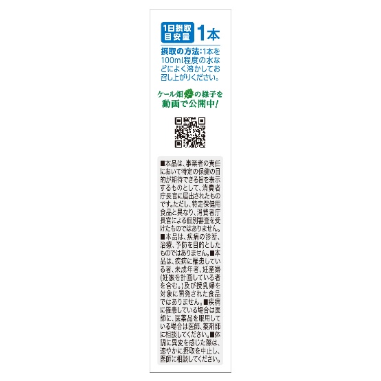 HOME 食品/菓子 サプリメント 野菜と乳酸菌とビフィズス菌がとれる青汁 NEW おすすめ FANCL 野菜と乳酸菌とビフィズス菌がとれる青汁 10本入り1箱 免税価格¥1,170 6314100115 / 4908049609894 免税価格 ¥1,170 6314100115 / 4908049609894 機能性関与成分のビフィズス菌BB536が腸内環境を良好にし、腸の調子を整えます。また、有胞子性乳酸菌が、便通を改善します。ケール青汁としては日本初の機能性表示食品。国産100%のケールを使用し、1日に不足する緑黄色野菜の栄養分が補えます。すっきりと飲みやすい宇治抹茶入り。手軽に続けられ、飲みやすさにこだわった青汁です。【機能性表示食品についてのご注意】※本品は、特定保健用食品と異なり、消費者庁長官による個別審査を受けたものではありません。※疾病の診断、治療、予防を目的としたものではありません。※食生活は、主食、主菜、副菜を基本に、食事のバランスを。【ご注意】※ワルファリン(血液凝固阻止薬)を服用中の方は摂取しないでください。 一覧に戻る FANCLの商品をもっと見る ※実際の商品の色と異なる場合がありますのでご了承ください。 ※免税価格および取扱い商品は、都合により変更させていただく場合がございます。 ※サイト上に掲載している商品でもお品切れ・完売となっている場合がございますのでご了承ください。未成年者へのお酒・たばこ類の販売はいたしておりません。 関連商品から探す NEW おすすめ FANCL BB オリゴパウダー by 内脂サポート 30本入り3箱 ¥4,610 6314100131 NEW おすすめ FANCL コレステサポート 30日分60粒 ¥2,500 6314100116 NEW おすすめ FANCL ディープチャージ コラーゲン スティックゼリー 徳用 約30日分(徳用3個セット)1箱(10本) × 3 ¥5,700 6314100113 NEW おすすめ FANCL ハイグレードビタミン 徳用 約90日分(徳用3袋セット)1袋(120粒) × 3 ¥6,780 6314100125 NEW おすすめ FANCL プレミアムカロリミット 約30日分(120粒) ¥5,080 6314100123 このページは20歳以上の方を対象にしています。 生年月日を入力してください 西暦 2025 2024 2023 2022 2021 2020 2019 2018 2017 2016 2015 2014 2013 2012 2011 2010 2009 2008 2007 2006 2005 2004 2003 2002 2001 2000 1999 1998 1997 1996 1995 1994 1993 1992 1991 1990 1989 1988 1987 1986 1985 1984 1983 1982 1981 1980 1979 1978 1977 1976 1975 1974 1973 1972 1971 1970 1969 1968 1967 1966 1965 1964 1963 1962 1961 1960 1959 1958 1957 1956 1955 1954 1953 1952 1951 1950 1949 1948 1947 1946 1945 1944 1943 1942 1941 1940 1939 1938 1937 1936 1935 1934 1933 1932 1931 1930 1929 1928 1927 1926 1925 1924 1923 1922 1921 1920 1919 1918 1917 1916 1915 1914 1913 1912 1911 1910 1909 1908 1907 1906 1905 月 1 2 3 4 5 6 7 8 9 10 11 12 日 1 2 3 4 5 6 7 8 9 10 11 12 13 14 15 16 17 18 19 20 21 22 23 24 25 26 27 28 29 30 31 次回から入力を省略 はいいいえ ※共有パソコンをご利用の場合は「いいえ」を選んでください。 ※20歳未満の方は酒類、たばこの商品を閲覧する事が出来ません。 閲覧する トップページへ 当店では、未成年者に対しては酒類、たばこの販売をいたしません。 商品をカートに追加しました お買い物を続ける カートから注文へ進む