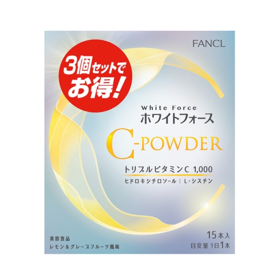 HOME 食品/菓子 サプリメント ホワイトフォース Cパウダー 徳用 NEW おすすめ FANCL ホワイトフォース Cパウダー 徳用 45本入り(徳用3個セット)1箱(15本)× 3 免税価格¥6,540 6314100129 / 4908049622701 【ご注意】※妊娠・授乳中の方、お子様はお召し上がりにならないでください。 免税価格 ¥6,540 6314100129 / 4908049622701 【ご注意】※妊娠・授乳中の方、お子様はお召し上がりにならないでください。 ホワイトフォースの成分に、ファンケルこだわりのトリプルビタミンC(ビタミンC誘導体、油脂コートビタミンC、水溶性ビタミンC)を1,000mg配合した、ホワイトフォース Cパウダーがついに定番化!水なしでおいしく摂れる、爽やかなレモン&グレープフルーツ風味のパウダーです。スティックタイプなので、持ち運びしやすく、外出時や旅行先でも手軽に摂れるのも嬉しいポイント。ワンランク上のケアで、透明感のある明るい笑顔で過ごしましょう! 一覧に戻る FANCLの商品をもっと見る ※実際の商品の色と異なる場合がありますのでご了承ください。 ※免税価格および取扱い商品は、都合により変更させていただく場合がございます。 ※サイト上に掲載している商品でもお品切れ・完売となっている場合がございますのでご了承ください。未成年者へのお酒・たばこ類の販売はいたしておりません。 関連商品から探す NEW おすすめ FANCL BB オリゴパウダー by 内脂サポート 30本入り3箱 ¥4,610 6314100131 NEW おすすめ FANCL コレステサポート 30日分60粒 ¥2,500 6314100116 NEW おすすめ FANCL ディープチャージ コラーゲン スティックゼリー 徳用 約30日分(徳用3個セット)1箱(10本) × 3 ¥5,700 6314100113 NEW おすすめ FANCL ハイグレードビタミン 徳用 約90日分(徳用3袋セット)1袋(120粒) × 3 ¥6,780 6314100125 NEW おすすめ FANCL プレミアムカロリミット 約30日分(120粒) ¥5,080 6314100123 このページは20歳以上の方を対象にしています。 生年月日を入力してください 西暦 2025 2024 2023 2022 2021 2020 2019 2018 2017 2016 2015 2014 2013 2012 2011 2010 2009 2008 2007 2006 2005 2004 2003 2002 2001 2000 1999 1998 1997 1996 1995 1994 1993 1992 1991 1990 1989 1988 1987 1986 1985 1984 1983 1982 1981 1980 1979 1978 1977 1976 1975 1974 1973 1972 1971 1970 1969 1968 1967 1966 1965 1964 1963 1962 1961 1960 1959 1958 1957 1956 1955 1954 1953 1952 1951 1950 1949 1948 1947 1946 1945 1944 1943 1942 1941 1940 1939 1938 1937 1936 1935 1934 1933 1932 1931 1930 1929 1928 1927 1926 1925 1924 1923 1922 1921 1920 1919 1918 1917 1916 1915 1914 1913 1912 1911 1910 1909 1908 1907 1906 1905 月 1 2 3 4 5 6 7 8 9 10 11 12 日 1 2 3 4 5 6 7 8 9 10 11 12 13 14 15 16 17 18 19 20 21 22 23 24 25 26 27 28 29 30 31 次回から入力を省略 はいいいえ ※共有パソコンをご利用の場合は「いいえ」を選んでください。 ※20歳未満の方は酒類、たばこの商品を閲覧する事が出来ません。 閲覧する トップページへ 当店では、未成年者に対しては酒類、たばこの販売をいたしません。 商品をカートに追加しました お買い物を続ける カートから注文へ進む