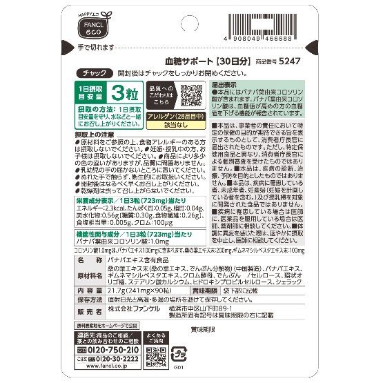 HOME 식품/간식 건강 보조 식품 혈당 서포트 실속 상품 NEW 추천 FANCL 혈당 서포트 실속 상품 Approx. 90 days(Economy set of 3 packets)1 packet (90 tablets) x 3 면세가격¥4,140 6314100132 / 4908049478162 면세가격 ¥4,140 6314100132 / 4908049478162 For people with high blood sugar, the key to controlling sugar levels is early treatment.No matter how carefully we eat, our ability to control blood sugar decreases as we age.Blood-Glucose Support is a Food with Function Claims that regulates high blood sugar levels by helping the body to metabolize the sugar in the blood. Take care of your body’s functions with these ingredients for lowering blood sugar levels. 목록으로 돌아가기 FANCL 상품 더 보기 *실제 상품의 컬러와 상이할 수 있으니 양해바랍니다. *면세가격 및 취급상품은 불가피한 사정으로 인해 변경될 수 있습니다. *사이트에 기재된 상품이라도 품절・판매완료된 경우가 있으니 양해부탁드립니다. 미성년자에게 주류・담배류를 판매하지 않습니다. 관련 상품 NEW 추천 FANCL BB 올리고 파우더 by 내장지방 서포트 Contains 30 sticks 3 box ¥4,610 6314100131 NEW 추천 FANCL 딥 차지 콜라겐 스틱 젤리 Approx. 30 days(Economy set of 3 boxes)1 box (10 sticks) x 3 ¥5,700 6314100113 NEW 추천 FANCL 무릎관절 영양제 실속 상품 Approx. 90 days(Economy set of 3 packets)1 packet (30 tablets) x 3 ¥6,920 6314100130 NEW 추천 FANCL 채소, 유산균, 비피더스균을 섭취할 수 있는 녹즙 Contains 10 sticks1 box ¥1,170 6314100115 NEW 추천 FANCL 코레스테 서포트 30 days60 capsules ¥2,500 6314100116 이 페이지는 20세 이상을 대상으로하고 있습니다. 생년월일 서기 2025 2024 2023 2022 2021 2020 2019 2018 2017 2016 2015 2014 2013 2012 2011 2010 2009 2008 2007 2006 2005 2004 2003 2002 2001 2000 1999 1998 1997 1996 1995 1994 1993 1992 1991 1990 1989 1988 1987 1986 1985 1984 1983 1982 1981 1980 1979 1978 1977 1976 1975 1974 1973 1972 1971 1970 1969 1968 1967 1966 1965 1964 1963 1962 1961 1960 1959 1958 1957 1956 1955 1954 1953 1952 1951 1950 1949 1948 1947 1946 1945 1944 1943 1942 1941 1940 1939 1938 1937 1936 1935 1934 1933 1932 1931 1930 1929 1928 1927 1926 1925 1924 1923 1922 1921 1920 1919 1918 1917 1916 1915 1914 1913 1912 1911 1910 1909 1908 1907 1906 1905 월 1 2 3 4 5 6 7 8 9 10 11 12 일 1 2 3 4 5 6 7 8 9 10 11 12 13 14 15 16 17 18 19 20 21 22 23 24 25 26 27 28 29 30 31 다음번부터 입력을 생략 네아니요 ※공유 PC를 이용 시에는 “아니요” 선택해 주세요. 20세 미만의 분은 주류, 담배의 상품을 열람할 수 없습니다. 열람한다 톱 페이지로 저희 가게에서는, 미성년자에 대해서는 주류, 담배의 판매를 하지 않습니다. 상품을 장바구니에 추가했습니다 계속 쇼핑하세요 합의