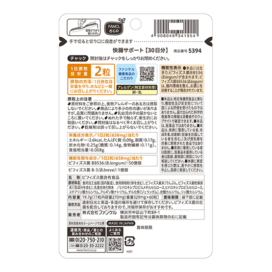 HOME 食品/雑貨 サプリメント 快腸サポート FANCL 快腸サポート 1袋(60粒)・約30日分 免税価格¥2,200 5524100304 / 4908049341954 免税価格 ¥2,200 5524100304 / 4908049341954 数量 1 カートにいれる お気に入りに追加 ご注文可能店舗 成田空港 成田空港第1ターミナル 成田空港 成田空港第2ターミナル 茨城空港 いわて花巻空港 ファンケルの「快腸サポート」には生きたビフィズス菌BB536(B.longum)が含まれます。ビフィズス菌BB536(B.longum)は、腸内環境を整え、お通じを改善することが報告されています。 ご注文可能店舗 成田空港 成田空港第1ターミナル 成田空港 成田空港第2ターミナル 茨城空港 いわて花巻空港 一覧に戻る FANCLの商品をもっと見る ※実際の商品の色と異なる場合がありますのでご了承ください。 ※免税価格および取扱い商品は、都合により変更させていただく場合がございます。 ※サイト上に掲載している商品でもお品切れ・完売となっている場合がございますのでご了承ください。未成年者へのお酒・たばこ類の販売はいたしておりません。 関連商品から探す 免税店限定NRT1NRT2IBRHNA SUNTORY WELLNESS セサミンEX 箱入り 270粒 ※お1人様6点まで ¥10,500 0017171003 NRT1NRT2IBRHNA SUNTORY WELLNESS ロコモア 360粒 ※お1人様6点まで ¥9,900 0017320991 NRT1NRT2IBRHNA SUNTORY WELLNESS ローヤルゼリー+ セサミンE 120粒 ※お1人様6点まで ¥5,800 0017320996 NRT1NRT2IBRHNA SUNTORY WELLNESS Milcolla ミルコラ 30包 ※お1人様6点まで ¥5,400 6313020004 NRT1NRT2 FANCL 徳用40代からのサプリメント女性 45〜90日分 30袋(1袋中5粒)×3袋 ¥11,090 6314100103